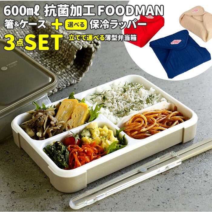 お弁当箱 セット 通販 フードマン 600 女子 1段 ランチボックス 抗菌 箸 お箸 薄型 おはし 弁当箱 レディース スリム ランチラッパー 保冷 お弁当袋 お弁当包み ランチクロス ランチョンマット 薄型弁当箱 シービージャパン