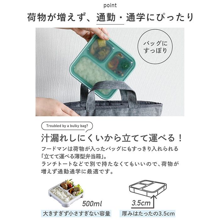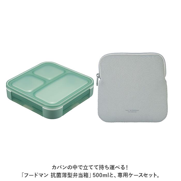 ・カバンの中で立てて持ち運べる!「フードマン 抗菌薄型弁当箱」500mlと、専用ケースセット。
