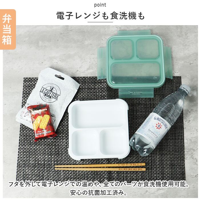 ・フタを外して電子レンジでの温めや、全てのパーツが食洗機使用可能。安心の抗菌加工済み。