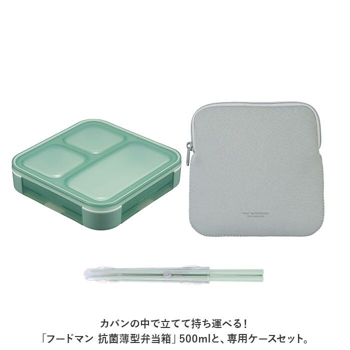 ・カバンの中で立てて持ち運べる!「フードマン 抗菌薄型弁当箱」500mlと、専用ケース&お箸セット。