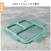 ・フタと本体を4ヶ所で固定するので漏れにくく、立てた状態での持ち運びも安心。