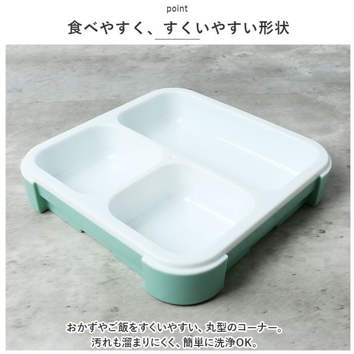 ・おかずやご飯をすくいやすい、丸型のコーナー。汚れも溜まりにくく、簡単に洗浄OK。