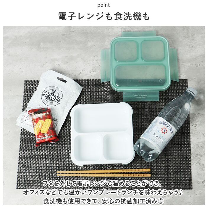 ・フタを外して電子レンジで温めることができ、オフィスなどでも温かいワンプレートランチを味わえちゃう♪食洗機も使用できて、安心の抗菌加工済み◎