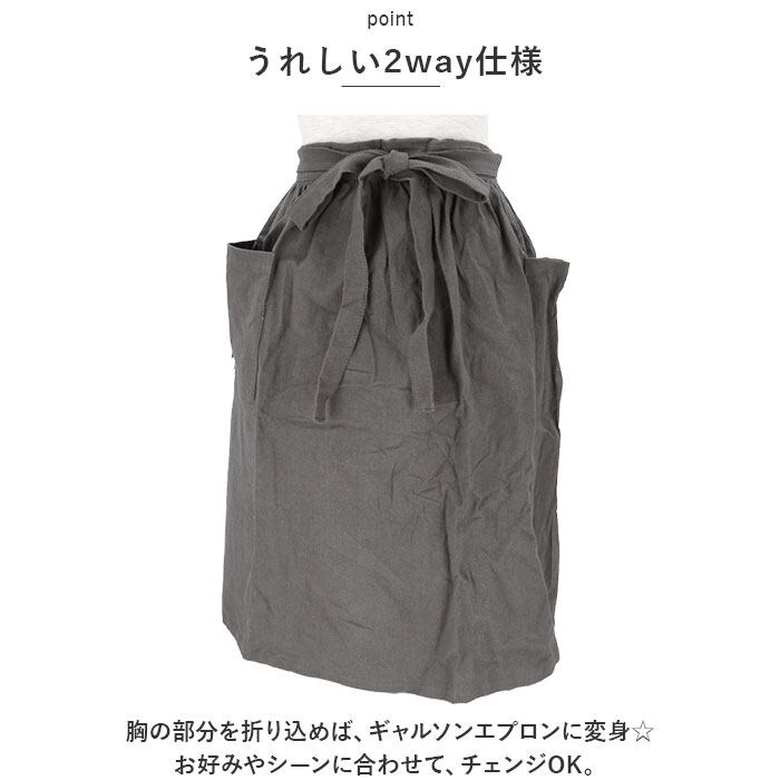 ・胸の部分を折り込めば、ギャルソンエプロンに変身☆お好みやシーンに合わせて、チェンジOK。