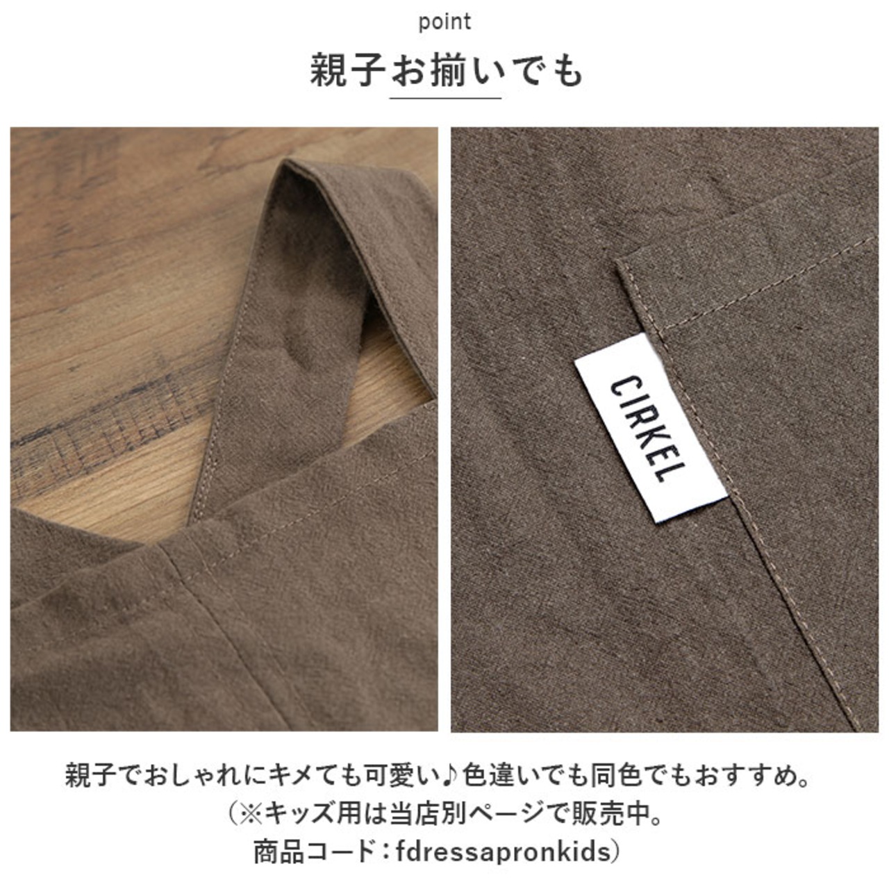 ・親子でおしゃれにキメても可愛い♪色違いでも同色でもおすすめ。(※キッズ用は当店別ページで販売中。商品コード:fdressapronkids)