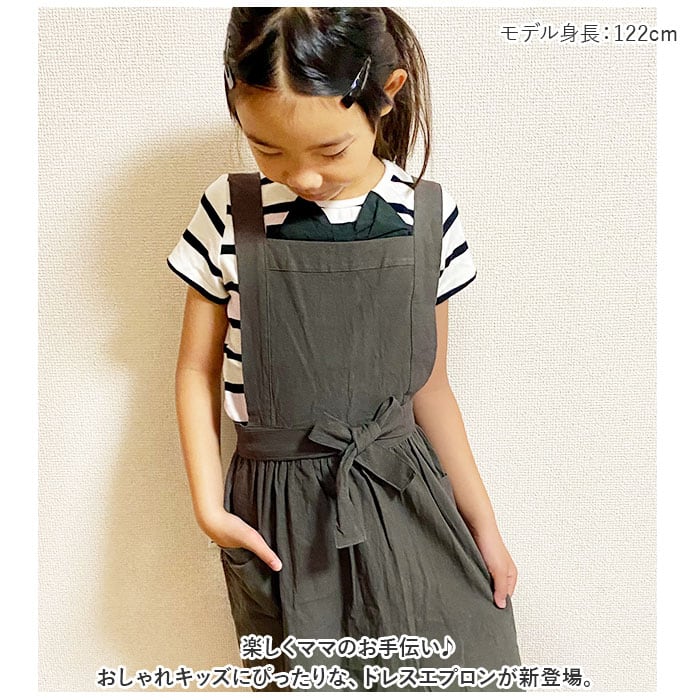 ・親子でおしゃれにキメても可愛い♪色違いでも同色でもおすすめ。(※大人用は当店別ページで販売中。ドレスエプロン:商品コードfdressapron/ロングドレスエプロン:商品コードflongdressapron)