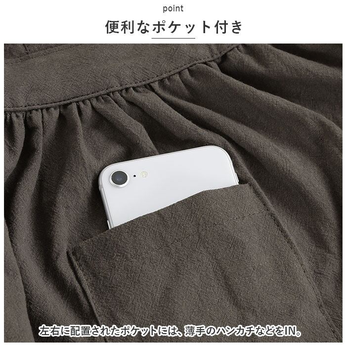 ・リネン風のナチュラル感がポイント!柔らかなコットン100%素材を使用しているから、ストレスなく着用できるのが嬉しい♪