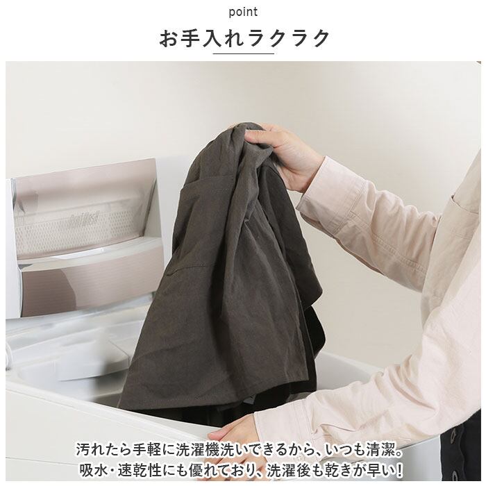 ・汚れたら手軽に洗濯機洗いできるから、いつも清潔。吸水・速乾性にも優れており、洗濯後も乾きが早い!