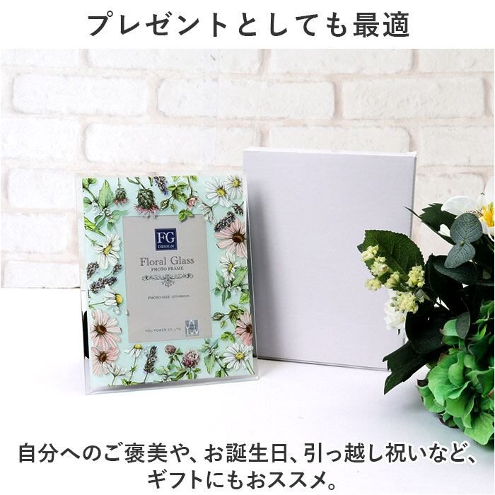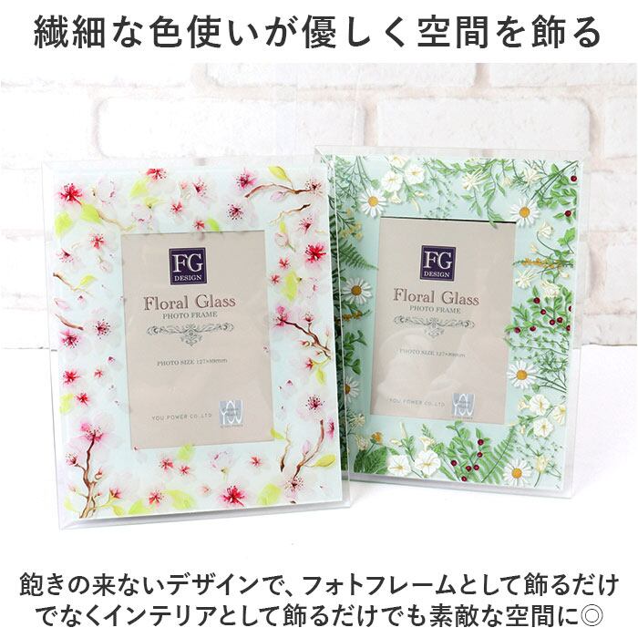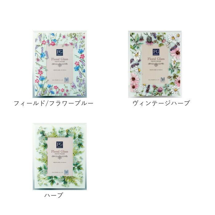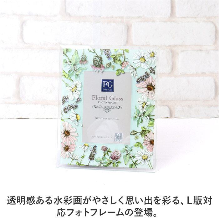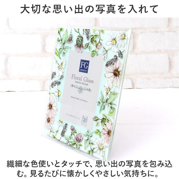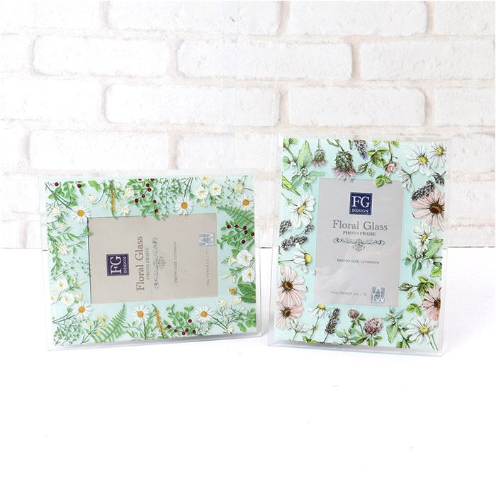 ・ガラスのフォトフレームが、透明感ある水彩画を美しく花や風に揺れる野花をアレンジ。