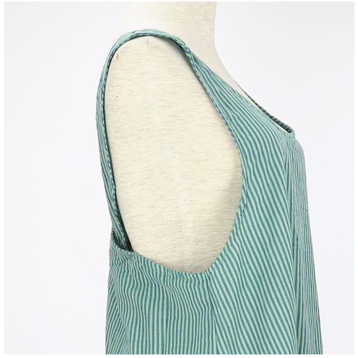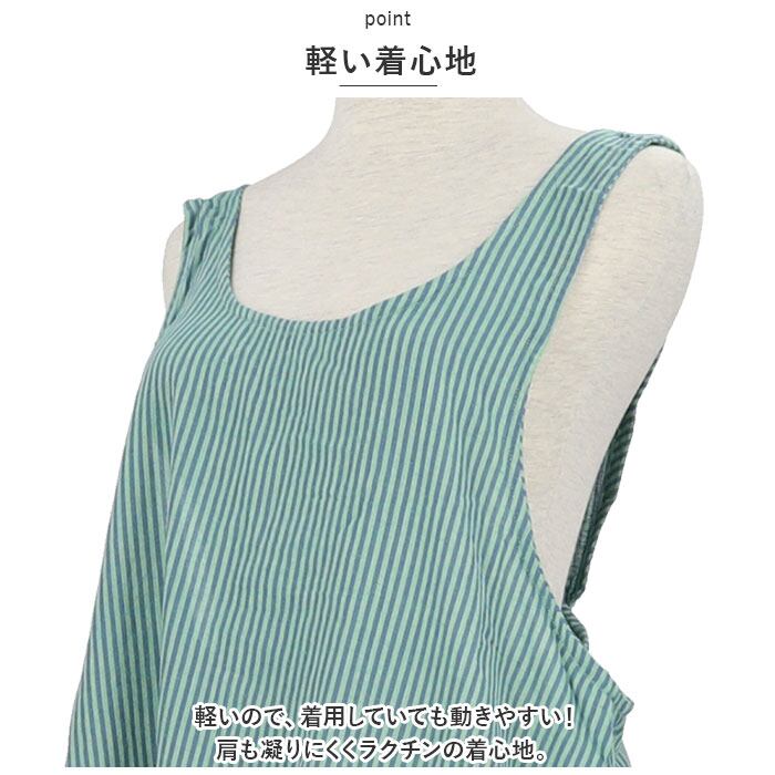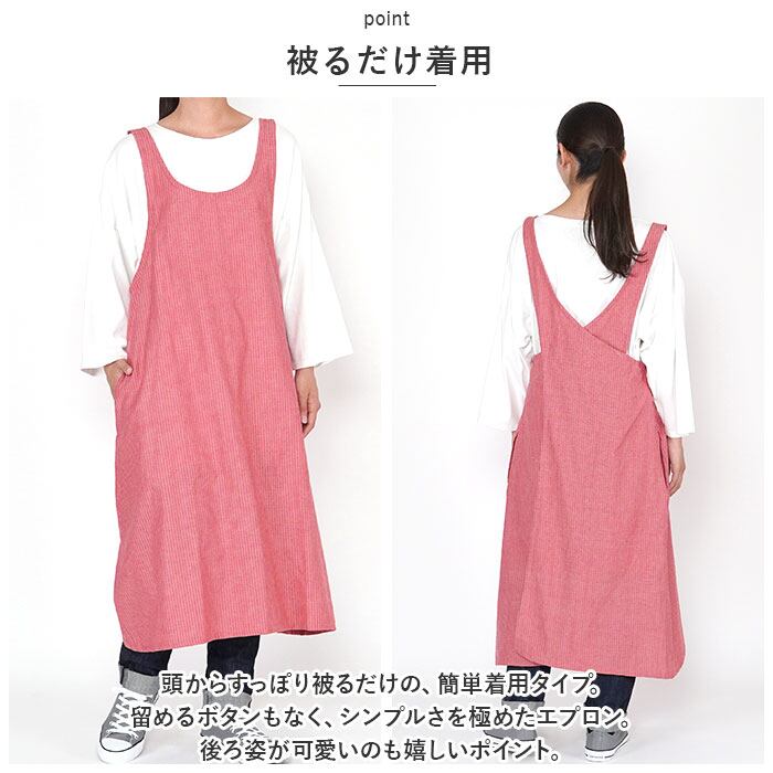 ・頭からすっぽり被るだけの、簡単着用タイプ。留めるボタンもなく、シンプルさを極めたエプロン。後ろ姿が可愛いのも嬉しいポイント。