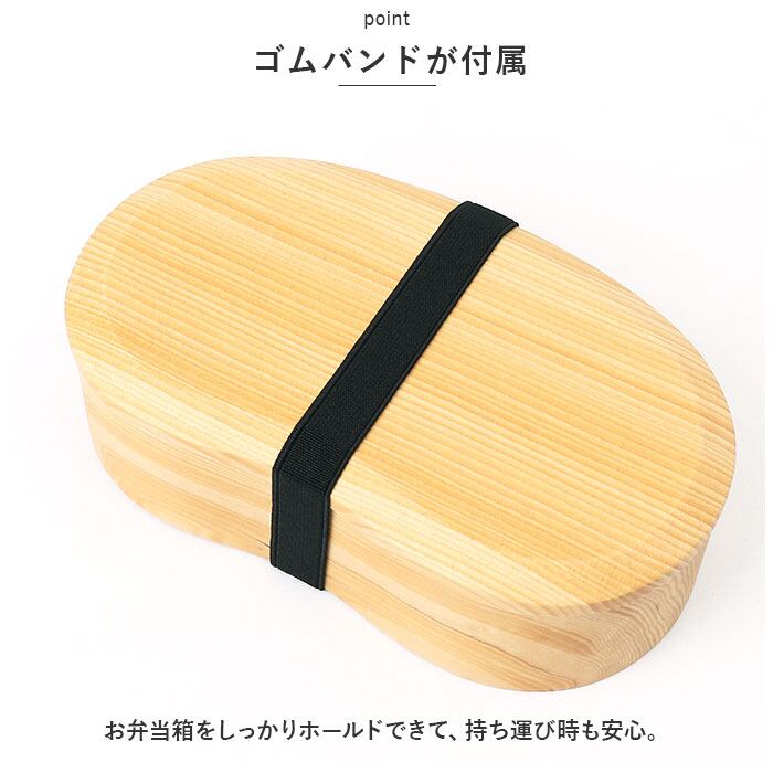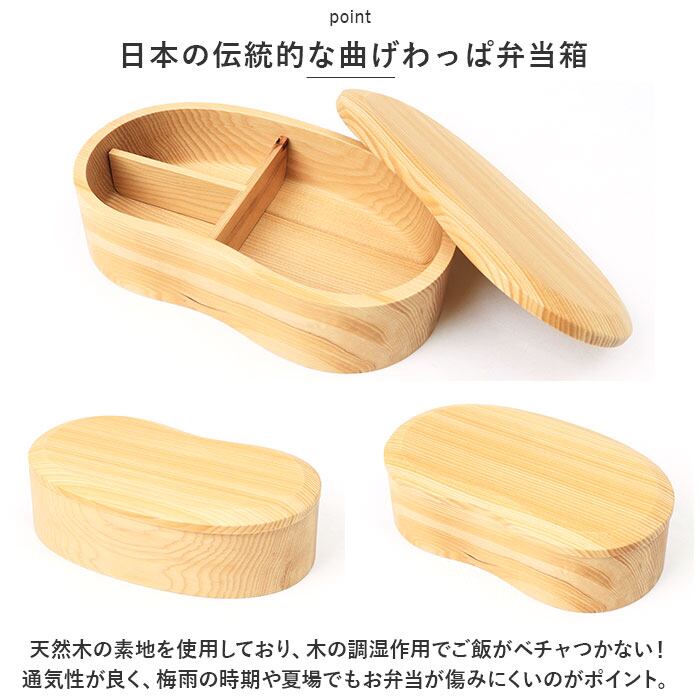 ・天然木の素地を使用しており、木の調湿作用でご飯がベチャつかない!通気性が良く、梅雨の時期や夏場でもお弁当が傷みにくいのがポイント。
