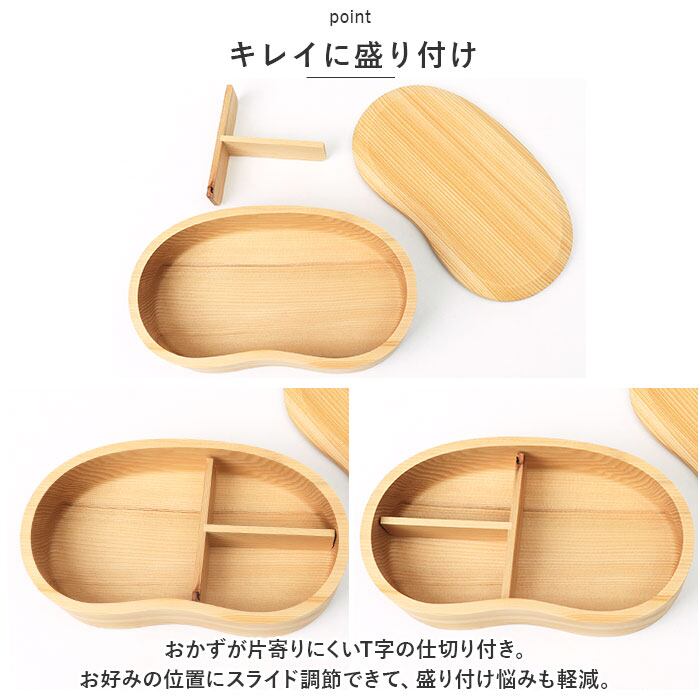 ・おかずが片寄りにくいT字の仕切り付き。お好みの位置にスライド調節できて、盛り付け悩みも軽減。