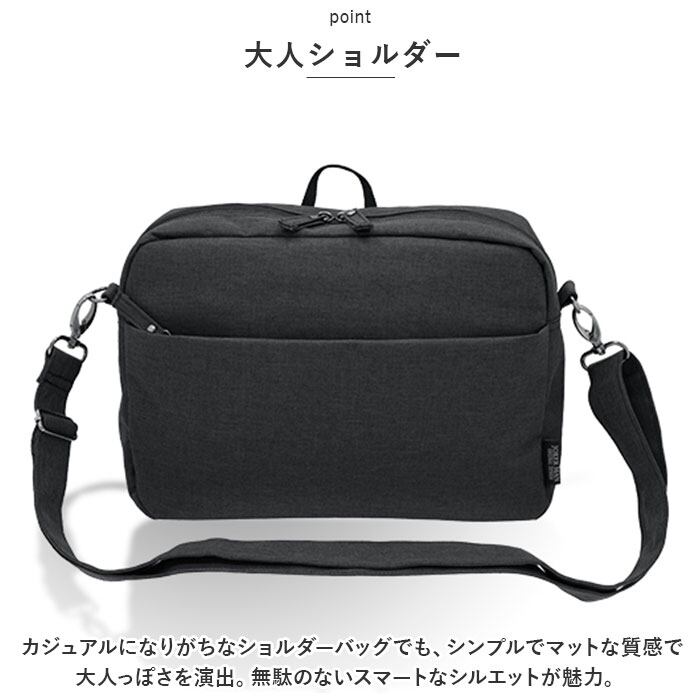 ・カジュアルになりがちなショルダーバッグでも、シンプルでマットな質感で大人っぽさを演出。無駄のないスマートなシルエットが魅力。