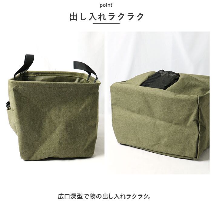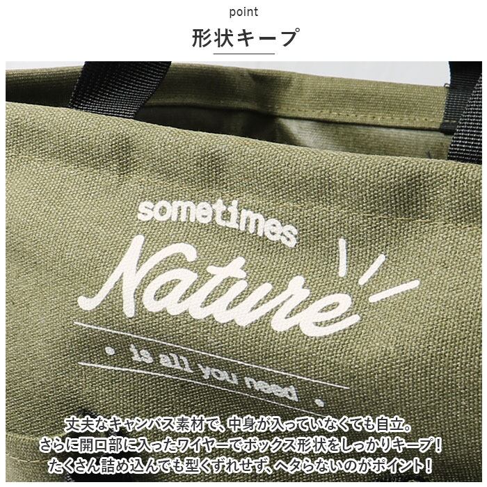 ・丈夫なキャンバス素材で、中身が入っていなくても自立。さらに開口部に入ったワイヤーでボックス形状をしっかりキープ!たくさん詰め込んでも型くずれせず、ヘタらないのがポイント!