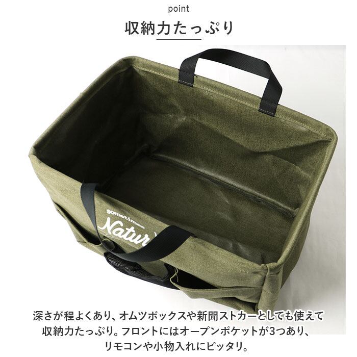 ・深さが程よくあり、オムツボックスや新聞ストカーとしても使えて収納力たっぷり。フロントにはオープンポケットが3つあり、リモコンや小物入れにピッタリ。