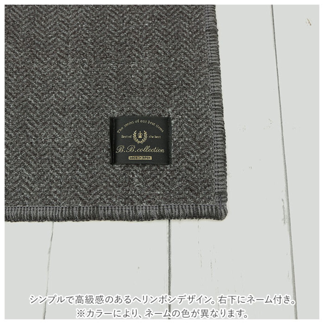 ・シンプルで高級感のあるヘリンボンデザイン。右下にネーム付き。(※カラーにより、ネームの色が異なります。)