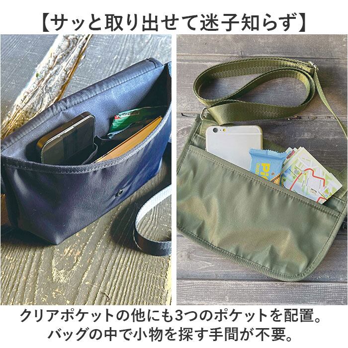 ・クリアポケットの他にも3つのポケットを配置。バッグの中で小物を探す手間が不要。