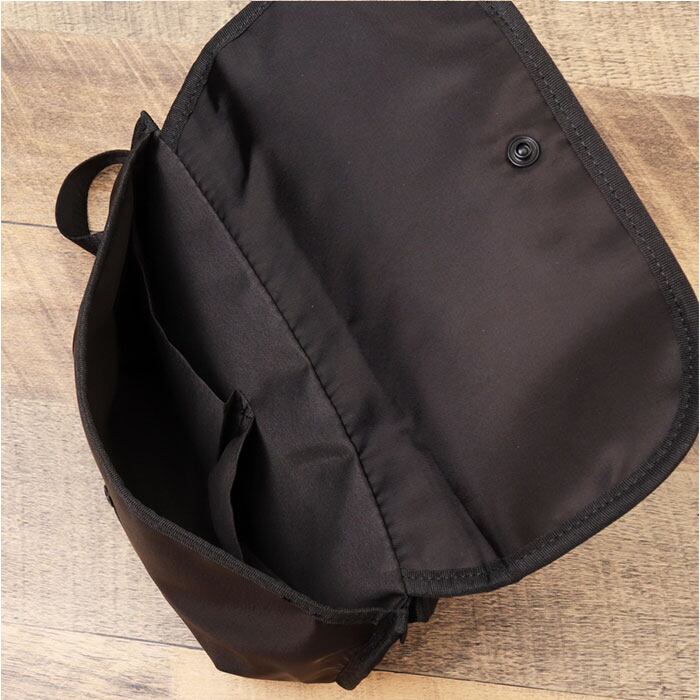 ・長財布が横向きに収まるサイズ感。350mlペットボトルやエチケットグッズも収納可能。