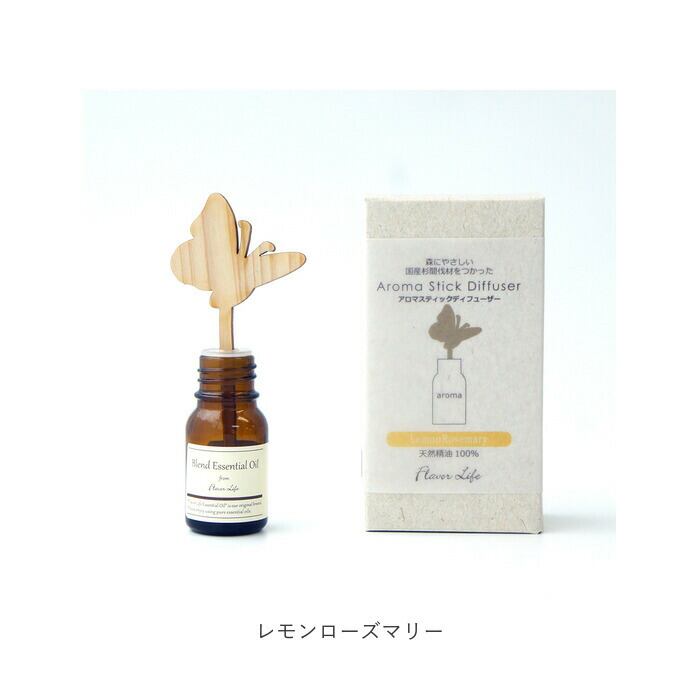 ・杉間伐材を使用したアロマスティックと、エッセンシャルオイル(天然精油100%)のセット。