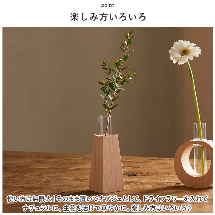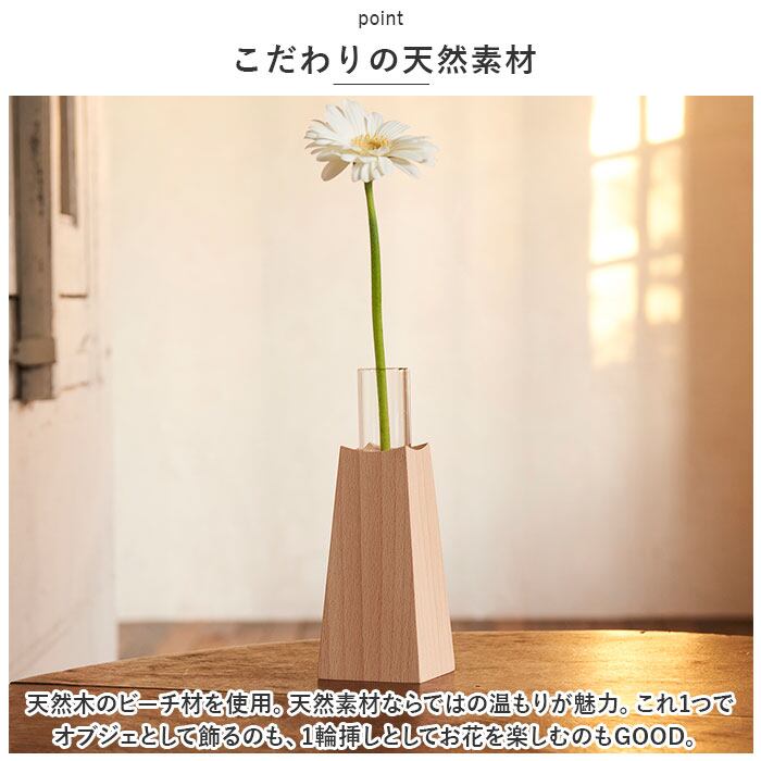 ・天然木のビーチ材を使用。天然素材ならではの温もりが魅力。これ1つでオブジェとして飾るのも、1輪挿しとしてお花を楽しむのもGOOD。