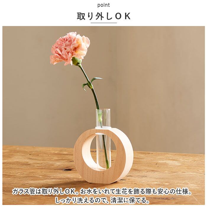 ・ガラス管は取り外しOK。お水をいれて生花を飾る際も安心の仕様。しっかり洗えるので、清潔に保てる。