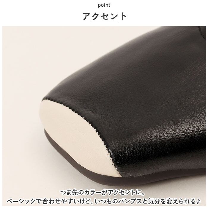 ・つま先のカラーがアクセントに。ベーシックで合わせやすいけど、いつものパンプスと気分を変えられる♪