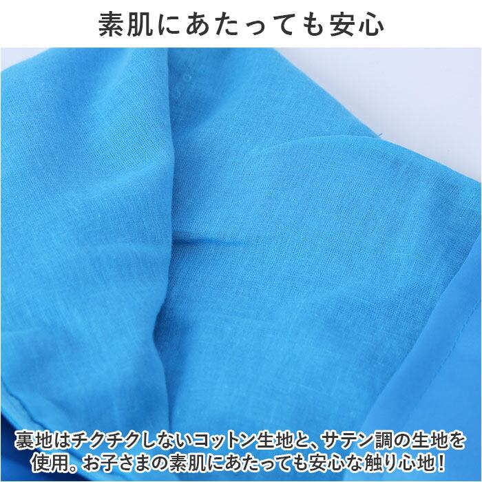・裏地はチクチクしないコットン生地と、サテン調の生地を使用。お子さまの素肌にあたっても安心な触り心地!