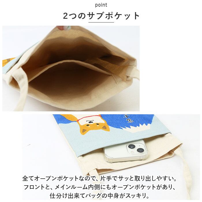・バッグ前面には思わず微笑んでしまうような、ゆるっとキャラが貴方を癒してくれる★コットン生地でカジュアルに、お洒落に、キメたい時にピッタリ!