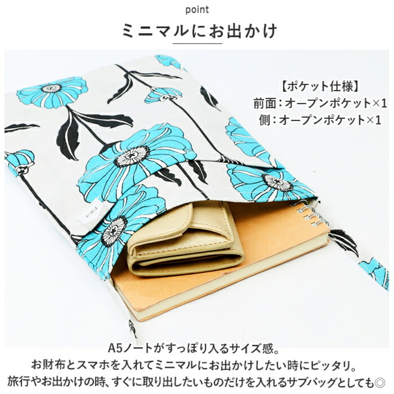 ・A5ノートがすっぽり入るサイズ感。お財布とスマホを入れてミニマルにお出かけしたい時にピッタリ。旅行やお出かけの時、すぐに取り出したいものだけを入れるサブバッグとしても◎