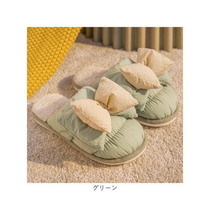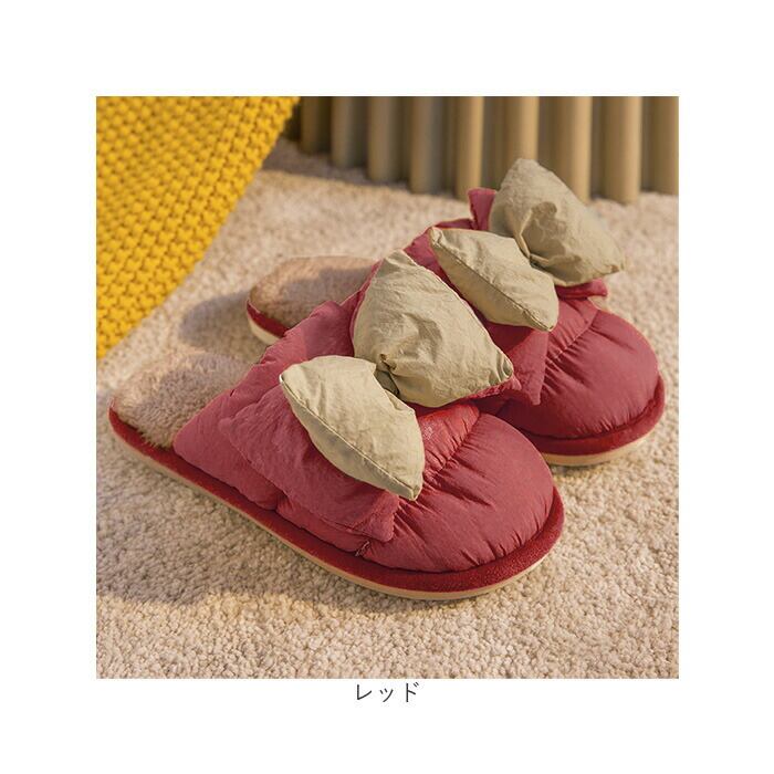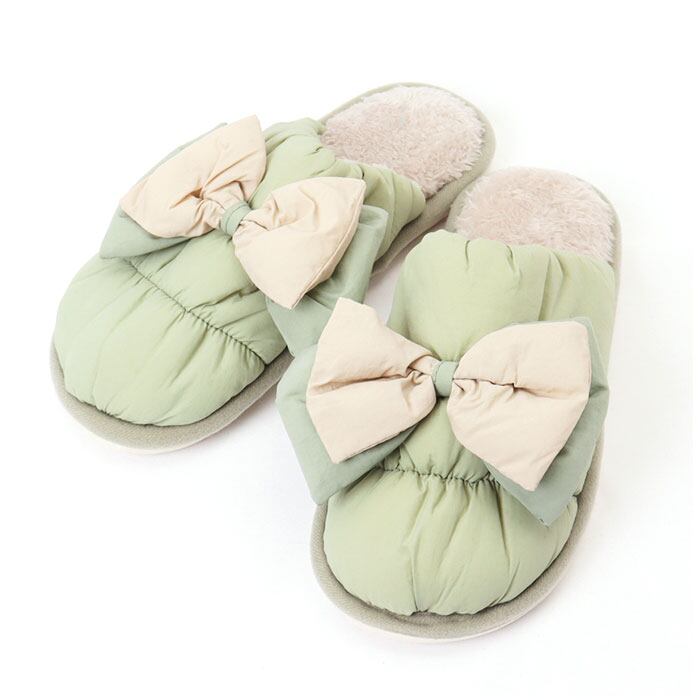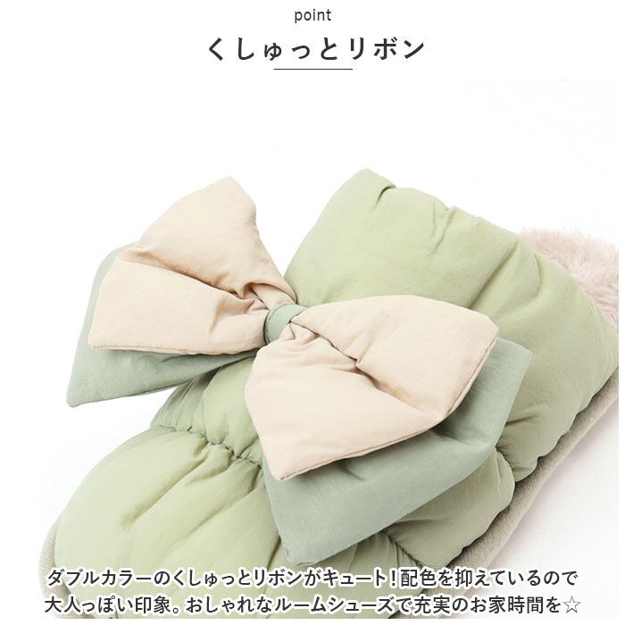 ・ダブルカラーのくしゅっとリボンがキュート!配色を抑えているので大人っぽい印象。おしゃれなルームシューズで充実のお家時間を☆
