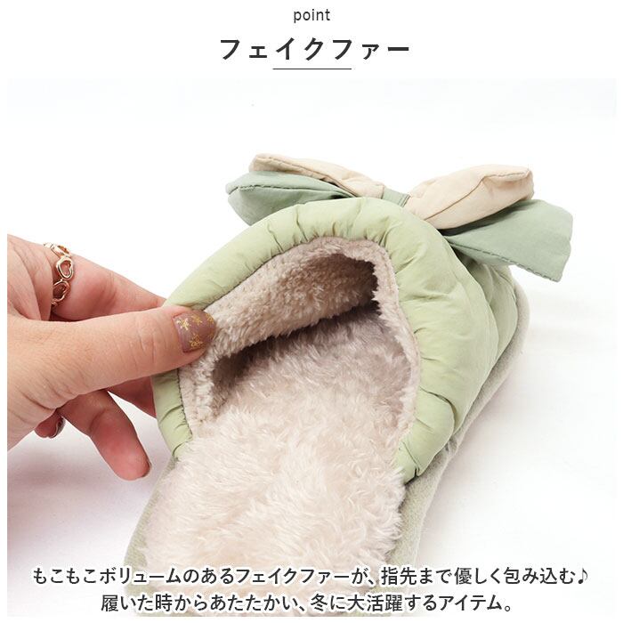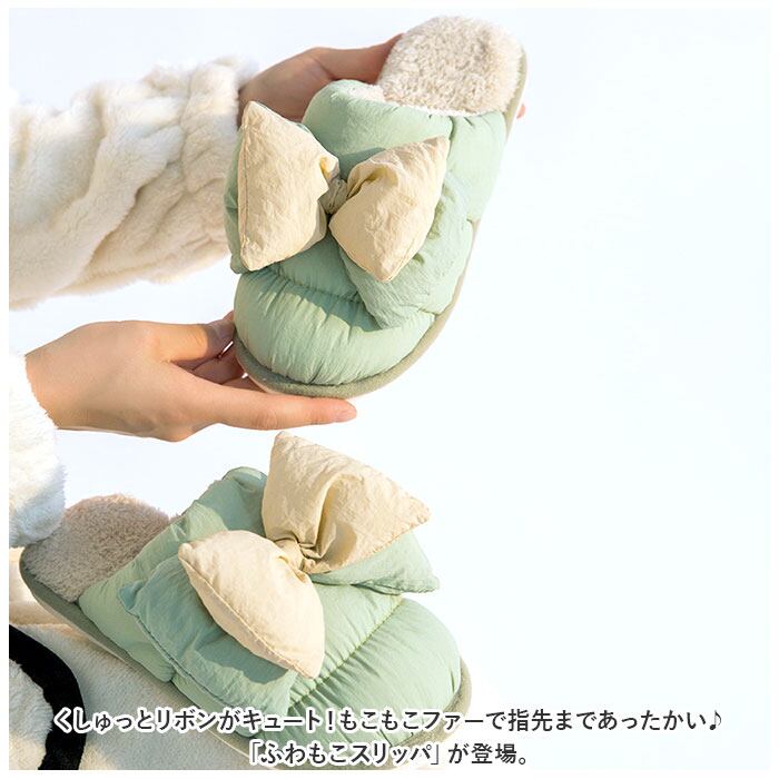 ・くしゅっとリボンがキュート!もこもこファーで指先まであったかい♪「ふわもこスリッパ」が登場。