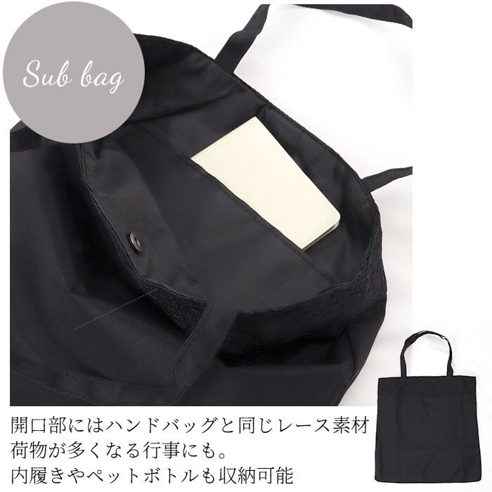 ・開口部にはハンドバッグと同じレース素材を使用。入園・入学式など、荷物が多くなる行事にも。内履きやペットボトルも収納可能。