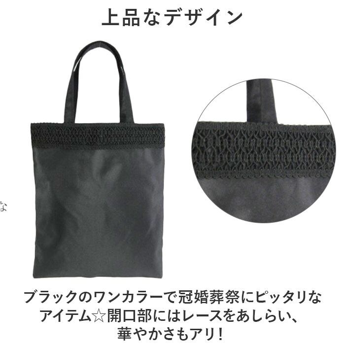 ・ブラックのワンカラーで冠婚葬祭にピッタリなアイテム☆開口部にはレースをあしらい、華やかさもアリ!