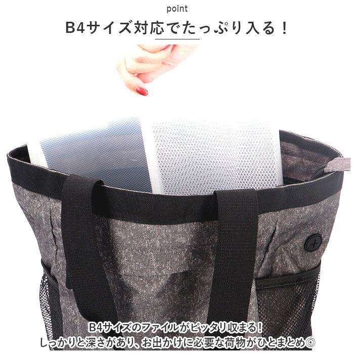 ・B4サイズのファイルがピッタリ収まる!しっかりと深さがあり、お出かけに必要な荷物がひとまとめ◎