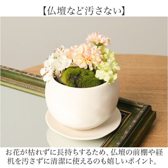 ・お花が枯れずに長持ちするため、仏壇の前棚や経机を汚さずに清潔に使えるのも嬉しいポイント。