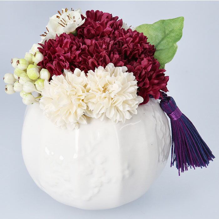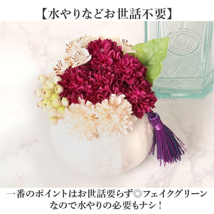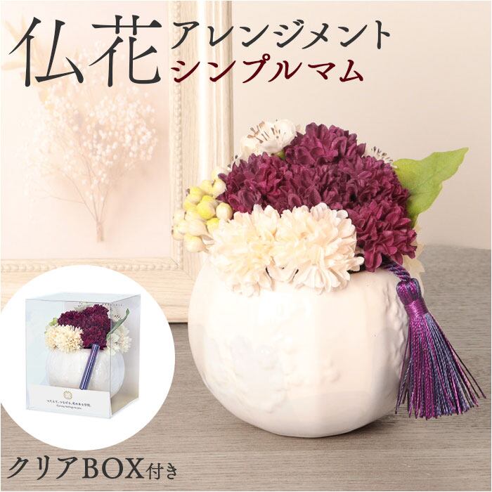 造花 お供え花 アレンジメント 通販 お供え 花 アーティフィシャルフラワー 仏花 アレンジ フェイクグリーン アーティフィシャルグリーン おしゃれ ポット 鉢植え インテリア 卓上 小さい FPN-0032 シンプルマムアレンジパープル ポピー YDM