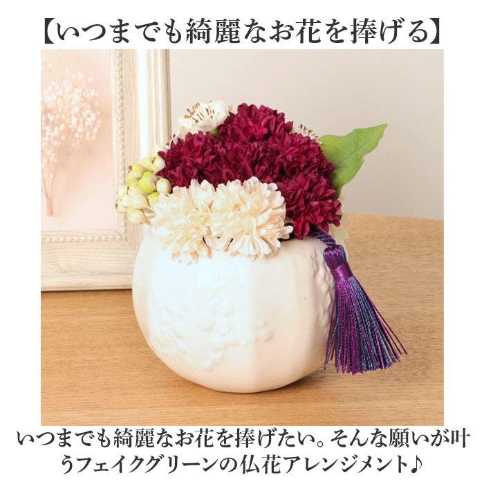 ・いつまでも綺麗なお花を捧げたい。そんな願いが叶うフェイクグリーンの仏花アレンジメント♪