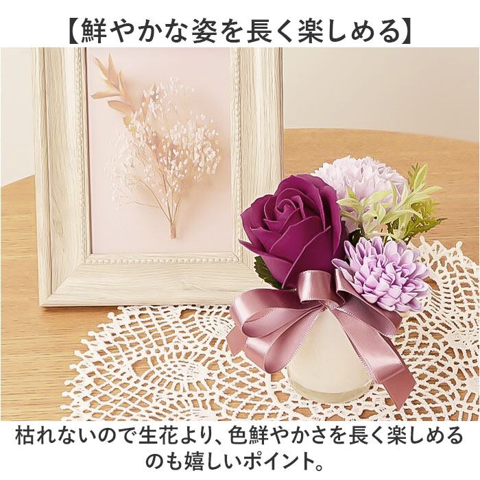 ・爽やかな石鹸の香りがするソープフラワー。ほんのりとした香りで観賞用にピッタリ☆