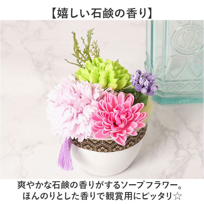 ・爽やかな石鹸の香りがするソープフラワー。ほんのりとした香りで観賞用にピッタリ☆