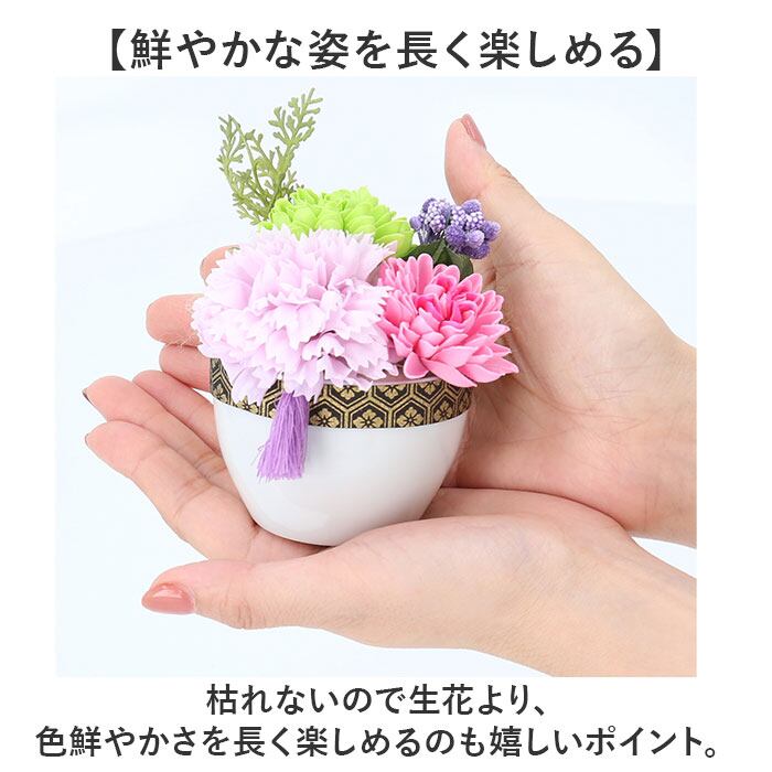 造花 お供え花 アレンジメント 通販 お供え 花 ソープフラワー シャボンフラワー 仏花 アーティフィシャルフラワー フェイクグリーン アーティフィシャルグリーン アレンジ ポット おしゃれ 鉢植え FPN-0051 ミニサボンアレンジホワイト ポピー YDM