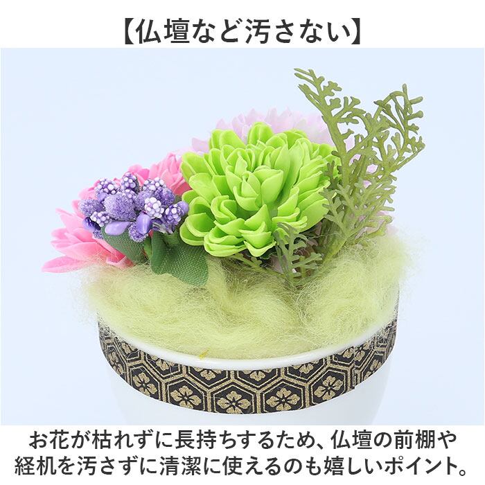 ・お花が枯れずに長持ちするため、仏壇の前棚や経机を汚さずに清潔に使えるのも嬉しいポイント。