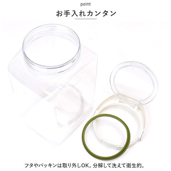 ・フタやパッキンは取り外しOK。分解して洗えて衛生的。