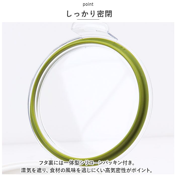 ・フタ裏には一体型シリコーンパッキン付き。湿気を遮り、食材の風味を逃しにくい高気密性がポイント。