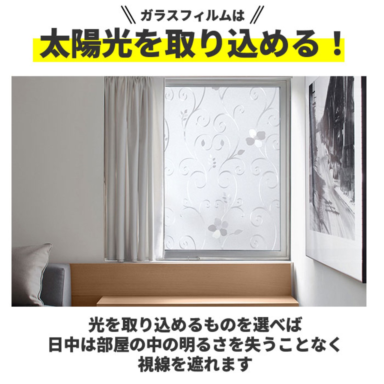 ・極薄の半透明フィルムを窓ガラスに貼り付けるだけで、お洒落なすりガラスに簡単リフォーム!