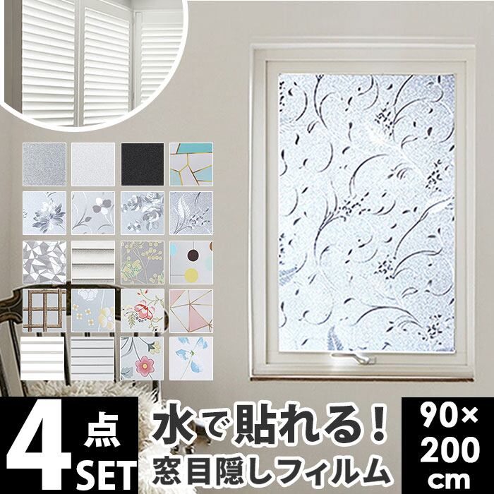 ガラスフィルム 窓 目隠しシート 4本セット 通販 フィルム 窓ガラス 窓ガラスフィルム UVカット 遮熱 はがせる 断熱フィルム 厚さ対策 日差し対策 水で貼る 剥がせる 賃貸 飛散防止 窓用フィルム 防犯フィルム 結露防止 装飾フィルム