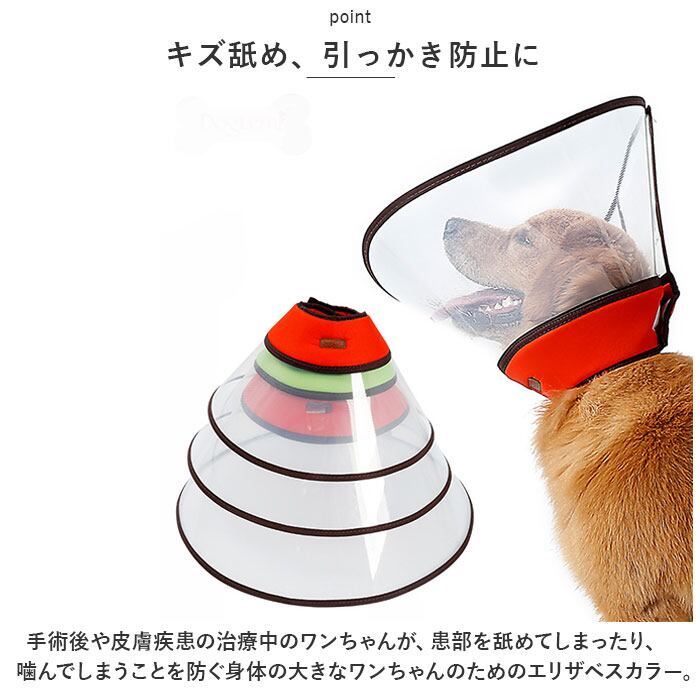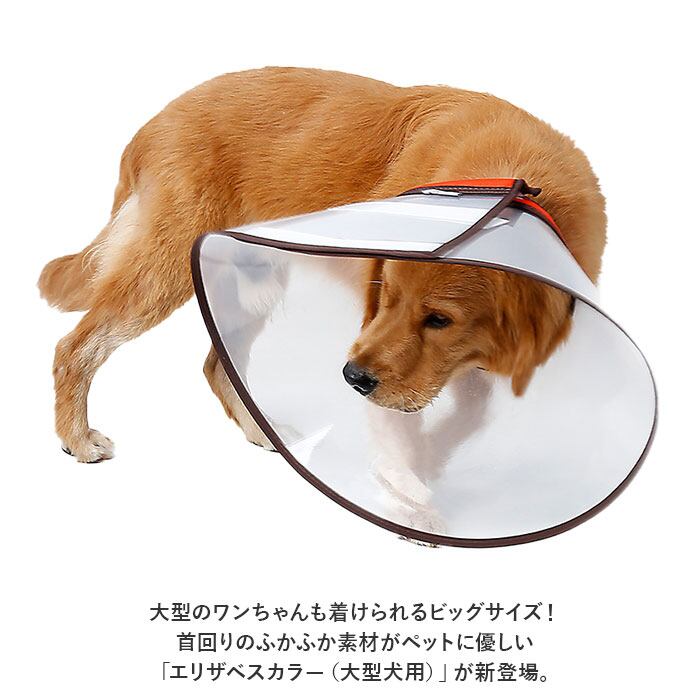 ・手術後や皮膚疾患の治療中のワンちゃんが、患部を舐めてしまったり、噛んでしまうことを防ぐ身体の大きなワンちゃんのためのエリザベスカラー。