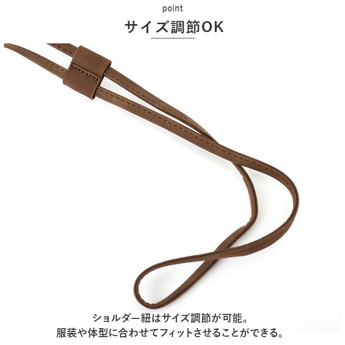 ・ショルダー紐はサイズ調節が可能。服装や体型に合わせてフィットさせることができる。