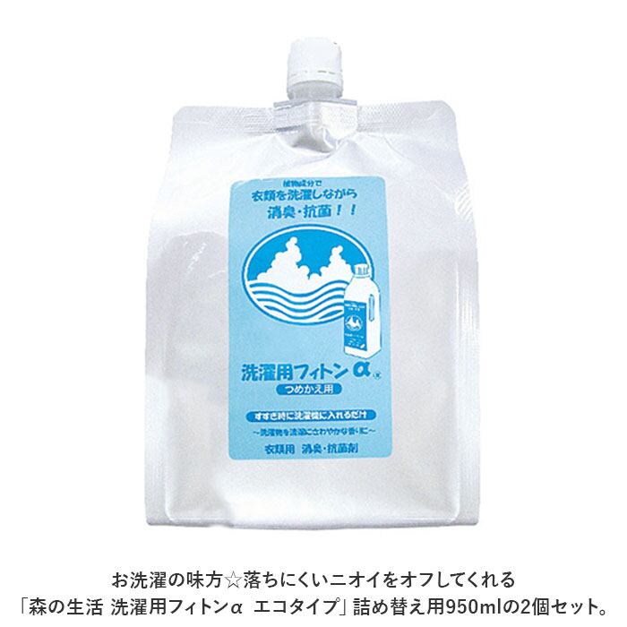 森の生活 洗濯用フィトンα 詰替え用 2個セット 通販 950ml 除菌消臭剤 消臭抗菌剤 抗菌剤 消臭 除菌 抗菌 フィトン 防臭 加齢臭 部屋干し 植物精油成分 ランドリー用品 洗濯用品 つけおき洗い 手もみ洗い 日用品
