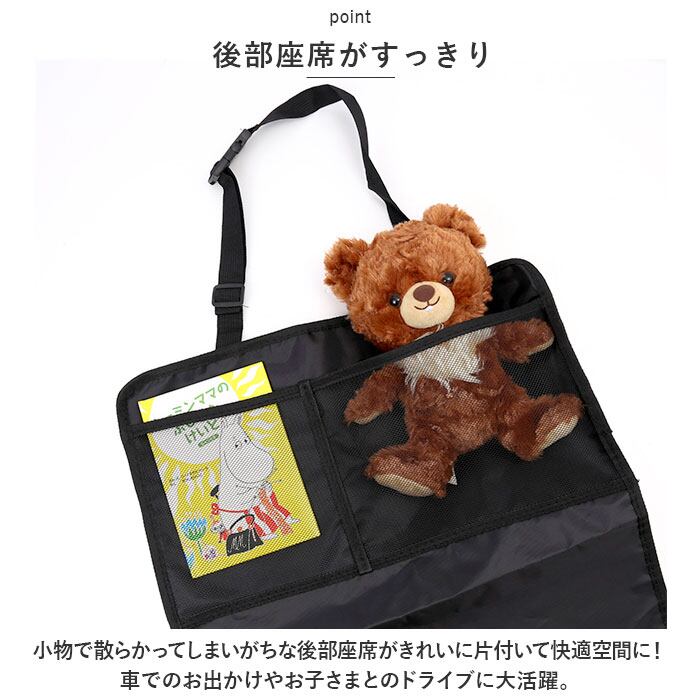 ・小物で散らかってしまいがちな後部座席がきれいに片付いて快適空間に!車でのお出かけやお子さまとのドライブに大活躍。