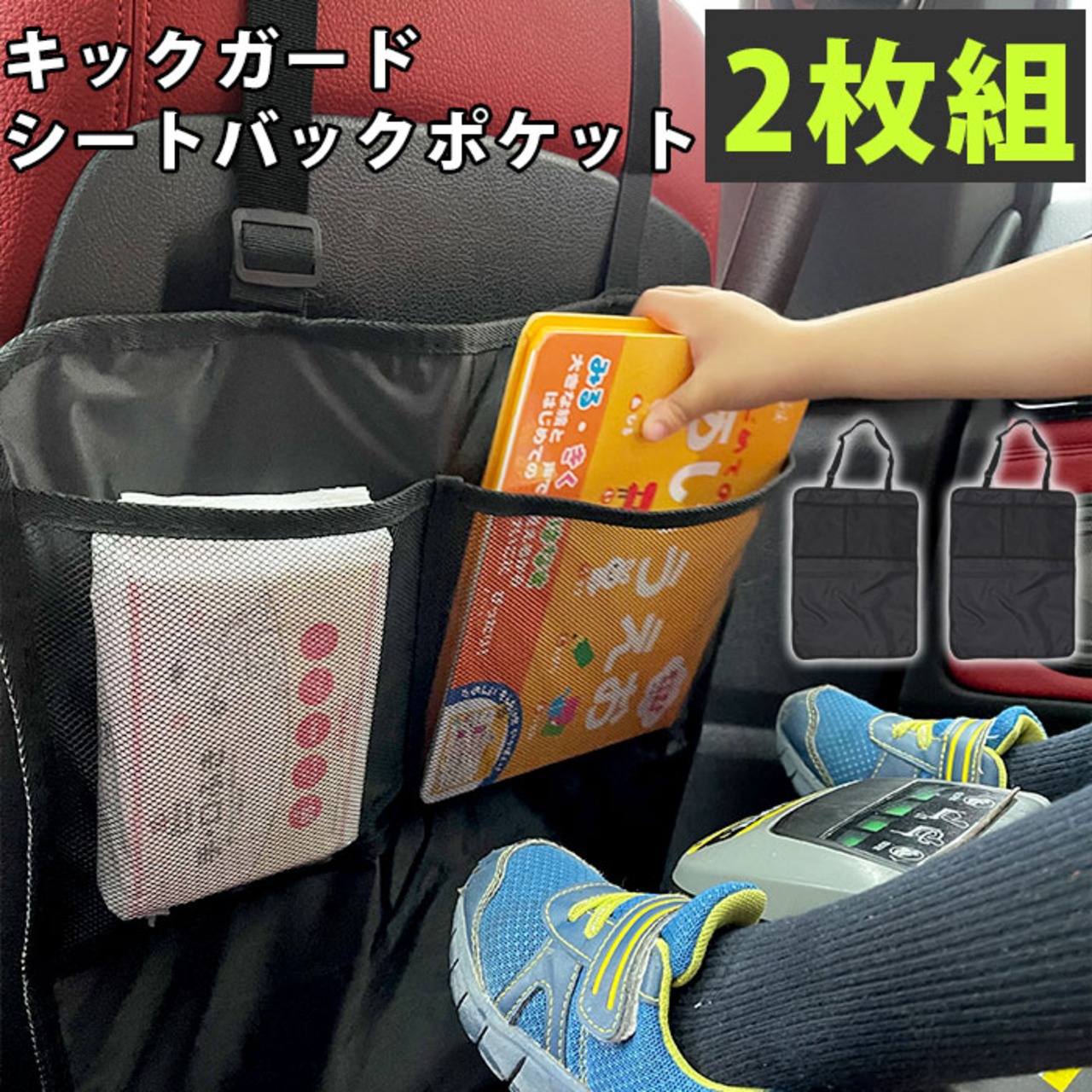 ・サッと被せて、シート背面を靴汚れからガード!小物の収納にも便利な「キックガード&シートバックポケット×2枚セット」が新登場。